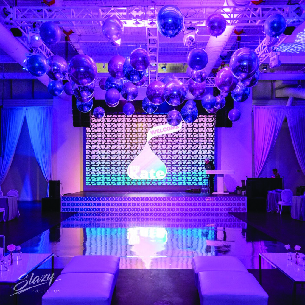 Join us for a delightful evening at Kate’s party, featuring a charming Hershey Kisses design with XOXOXO wraps! Slazy Production is thrilled to present a custom shiny dance floor in beautiful purple tones, adding a touch of elegance and fun to the celebration. This unique setup will create the perfect backdrop for dancing and making memories. Let’s make Kate’s event a sweet success that everyone will cherish—contact us today to bring this enchanting vision to life!